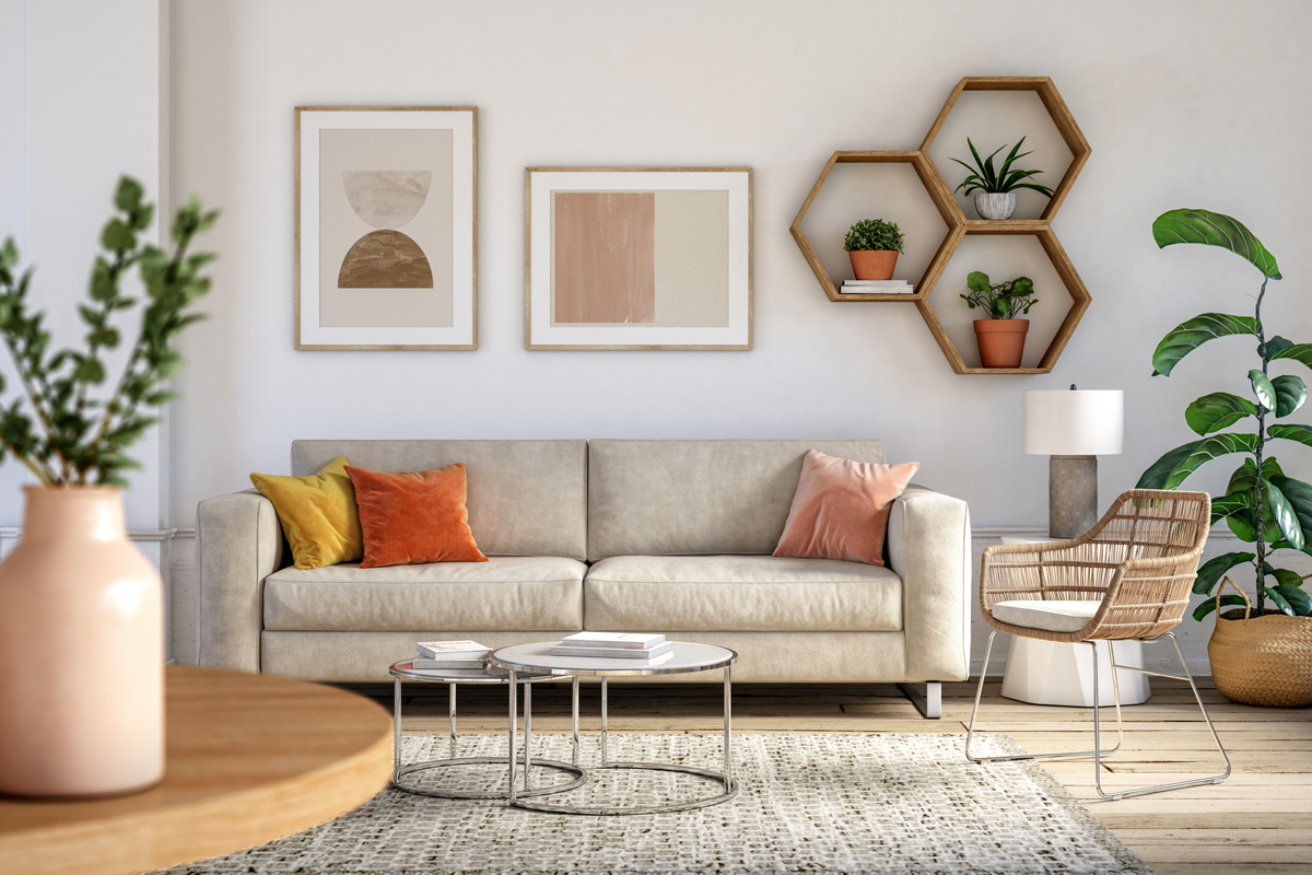 Finally, don’t forget to throw in a few colorful accents, like throw pillows or large vases, to complete the look.