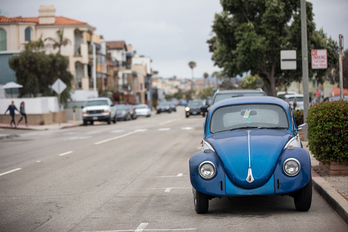 A classic Volkswagon bug is seen parked in Manhattan Beach, Calif.