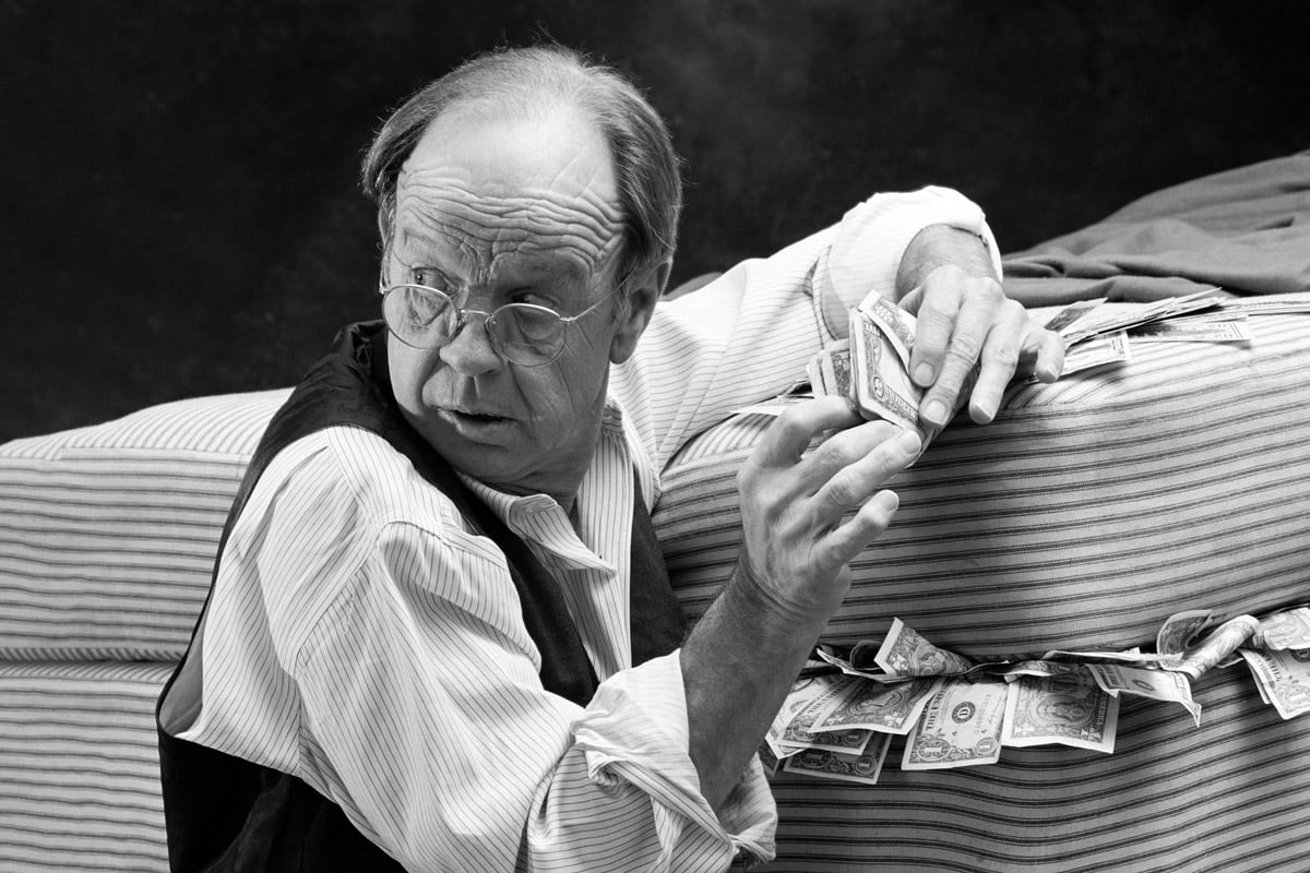 A man stashes cash in-between his mattress.
